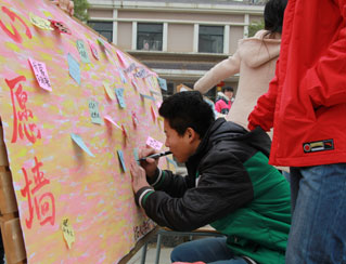 12月15日,南昌大學(xué)護(hù)理學(xué)院在醫(yī)學(xué)院新世紀(jì)廣場(chǎng)舉行了2013大學(xué)生社會(huì)實(shí)踐評(píng)選成果校園巡展。此次巡展共展出17塊展板,其中包括6塊獲獎(jiǎng)優(yōu)秀團(tuán)隊(duì)介紹板、6塊“愛(ài)佑童心”志愿者隊(duì)“愛(ài)佑之行”展板、3塊“愛(ài)·一起來(lái)”宣傳海報(bào)板、一塊留言板和一塊心愿墻展板。展板形象展現(xiàn)了“愛(ài)佑童心”三下鄉(xiāng)團(tuán)隊(duì)實(shí)踐全過(guò)程,從前期的緊張準(zhǔn)備、中期實(shí)踐到后期的精心總結(jié),將“愛(ài)佑童心”六支實(shí)踐隊(duì)伍的活動(dòng)詳細(xì)地展現(xiàn)給大家。最后,參觀者也在心愿墻為先心患兒寫(xiě)下最真摯的祝福,“愛(ài)佑童心,加油”“祝愿先心患兒早日康復(fù)”“藍(lán)天白云之下,我們與愛(ài)佑同行”等等祝福心愿擠滿心愿墻。