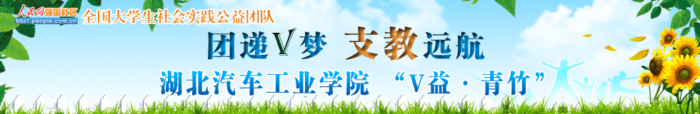 “V益·青竹”支教團隊由9名本科生組成。他們利用兩周暑假時間到湖北省竹溪縣蔣家堰鎮(zhèn)中原小學,開展以“團遞V夢 支教遠航”的主題的實踐活動。自7月9日開始,從“一米陽光暖庸巴”主題愛心募捐和義賣、“支教路上共成長”主題支教、“我的V夢想”主題畫展暨文藝匯演、和“團遞V夢 支教遠航”主題宣講等四個方面開展實踐活動。團隊已經(jīng)在六堰廣場舉行了“一米陽光暖庸巴”報紙義賣和愛心募捐活動,將籌集到的善款和物資捐贈給中原小學。支教課堂上,志愿者們教授孩子們英語、華爾茲、電子琴、繪畫等課程,開設(shè)班級也由計劃中的一個班擴展到三個班。