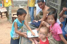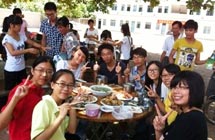 在三教村,志愿者受到了當(dāng)年解放軍進(jìn)城的待遇。由于小學(xué)在施工不便住宿,村民便打開自家新裝修的房子請(qǐng)隊(duì)員們住。接著隊(duì)員們到露天廚房大展身手,灶臺(tái)是由幾個(gè)石頭和一個(gè)大鐵鍋搭建而成。指導(dǎo)老師看大家興致高,也過(guò)來(lái)起火,燒柴。有天傍晚,烏云密布,眼瞅著雨就要掉下來(lái),為了能讓志愿者們下雨前吃到飯,熱心的村民為志愿者們買醬料,給他們燒起了飯。