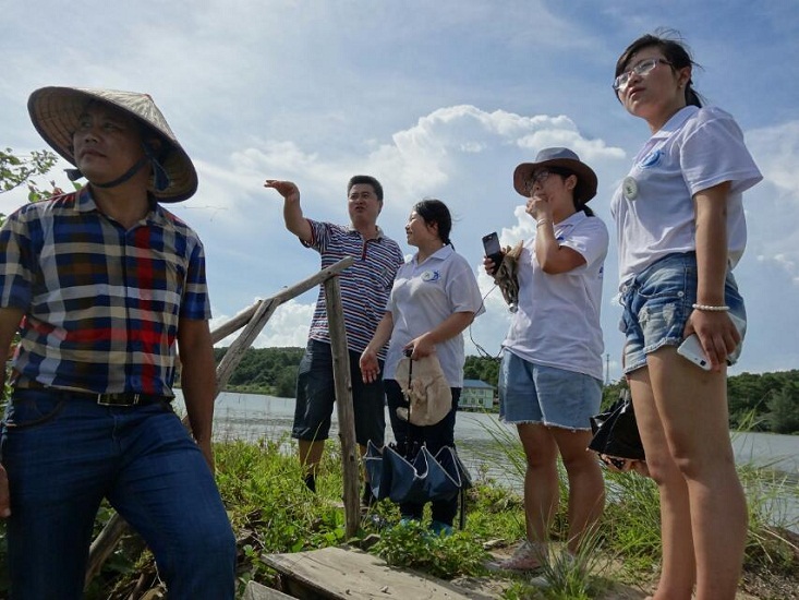 團(tuán)隊(duì)女生在廣西防城港參觀廣西紅樹(shù)林生態(tài)養(yǎng)殖基地