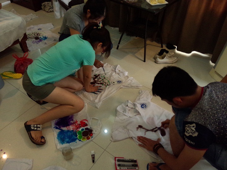 團(tuán)隊(duì)成員在自己的T恤上動(dòng)手繪制“手”護(hù)紅樹(shù)林圖樣