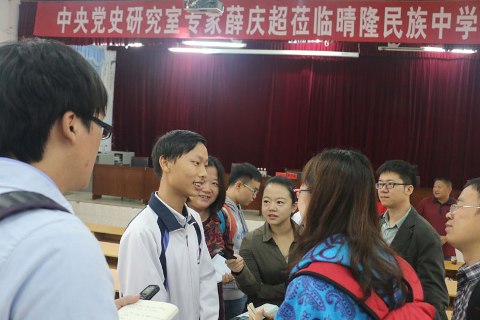 人民網(wǎng)9月16日電(鄧志慧 李小煒 于紅林 喬外)由中央網(wǎng)信辦、中央黨史研究室指導(dǎo),人民網(wǎng)聯(lián)合8省區(qū)市共同主辦的“尋找歷史記憶 緬懷抗戰(zhàn)英烈——紀(jì)念抗日戰(zhàn)爭(zhēng)勝利70周年系列活動(dòng)”第四站走進(jìn)貴州!包h史專家進(jìn)校園”是此次系列活動(dòng)的重要組成部分,16日上午,著名黨史專家、中央黨史研究室宣教局原副局長(zhǎng)薛慶超在貴州省晴隆民族中學(xué)為該校師生上了一堂生動(dòng)的抗戰(zhàn)歷史課,得到廣大師生一致好評(píng)。