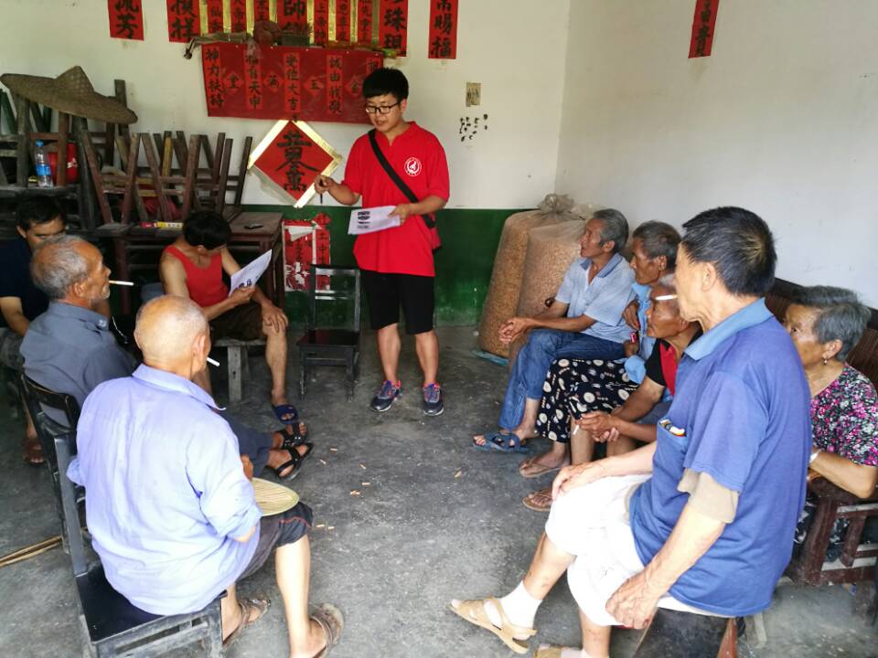 部分大學(xué)生深入偏遠(yuǎn)地區(qū)開展知識(shí)普及宣講活動(dòng)。圖為長安大學(xué)交通運(yùn)輸專業(yè)學(xué)生在革命老區(qū)遵義向村民宣傳交通安全知識(shí)。來源:團(tuán)隊(duì)提供