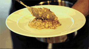 意大利燉飯最高境界是它如奶油般滑膩細(xì)致的口感,這全靠意大利米的高淀粉含量而來。蘑菇燉飯用了三種菇,野香菇、小白蘑菇和平菇。野蘑菇配雞湯,這鮮美是可以預(yù)計的。而為了追求濃郁香濃的口感,在烹飪過程中,會分次加入高湯,并且在每次加入高湯的時候適度攪拌,以幫助米粒更好的釋放出淀粉。