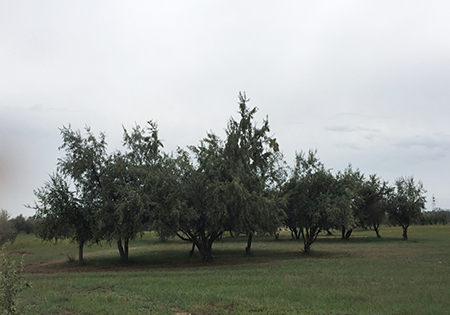 沙棗樹看上去不繁茂、樹干矮、粗皮,卻可以抗御著烈風(fēng),阻擋沙漠的前移,在缺水、多風(fēng)沙、鹽堿嚴重、土壤貧瘠的環(huán)境里頑強地活下來,撐起沙海里一片綠蔭,從不向瘋狂的風(fēng)沙低頭。