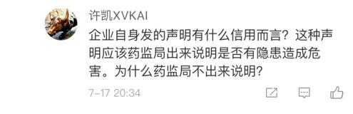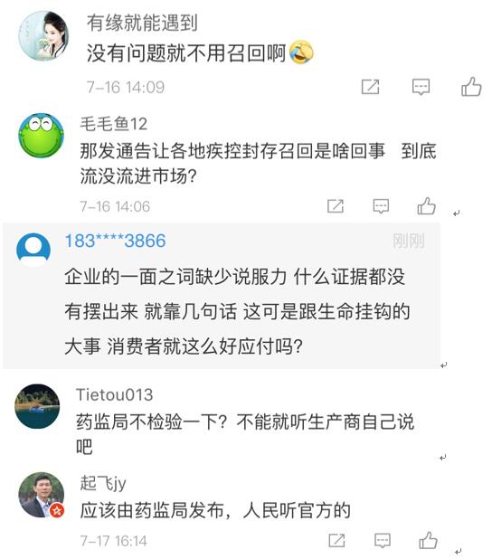 有網(wǎng)友認(rèn)為:“企業(yè)的一面之詞缺少說(shuō)服力,什么證據(jù)都沒(méi)有擺出來(lái),就靠幾句話,這可是跟生命掛鉤的大事,消費(fèi)者就這么好應(yīng)付嗎?”