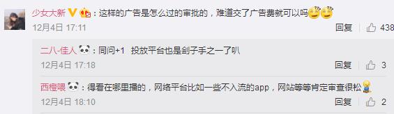 網(wǎng)友“@少女大新”:這樣的廣告是怎么過的審批的,難道交了廣告費就可以嗎?