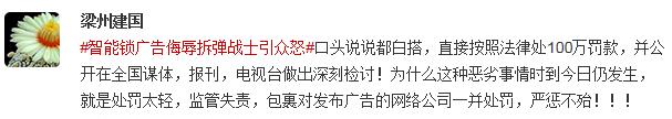 針對此次“凱迪仕智能鎖”“拆彈磚家”廣告事件,有網(wǎng)友認為平臺應該承擔相應責任。
