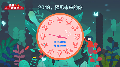 打開人民網(wǎng)兩會專題,便可看見“萬紅叢中一點(diǎn)綠”,這一抹“綠”便是特別策劃“2019兩會,預(yù)見未來”。該策劃的封面設(shè)計不僅呼應(yīng)主題,且頗具神秘感,時間元素貫穿全部場景。