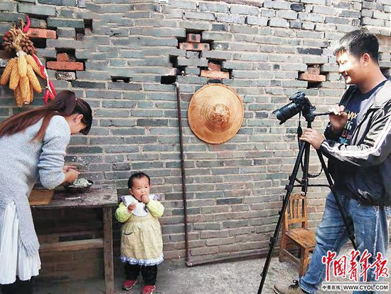 高玉樓從公司白領(lǐng)回到麗江榮將鎮(zhèn)創(chuàng)業(yè)賣芒果,為家人拍攝視頻。(中國青年報)