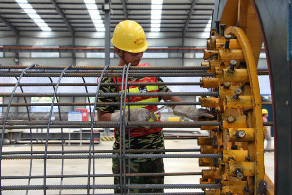 現(xiàn)在施工機械化程度非常高。圖為鋼筋籠機械加工設(shè)備,全自動焊接。 中鐵四局一公司提供