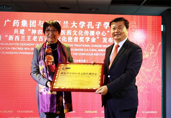 廣藥集團向奧克蘭大學(xué)孔子學(xué)院授予“神農(nóng)草堂中醫(yī)藥文化傳播中心”牌匾,寓意雙方將共同推廣中醫(yī)藥文化