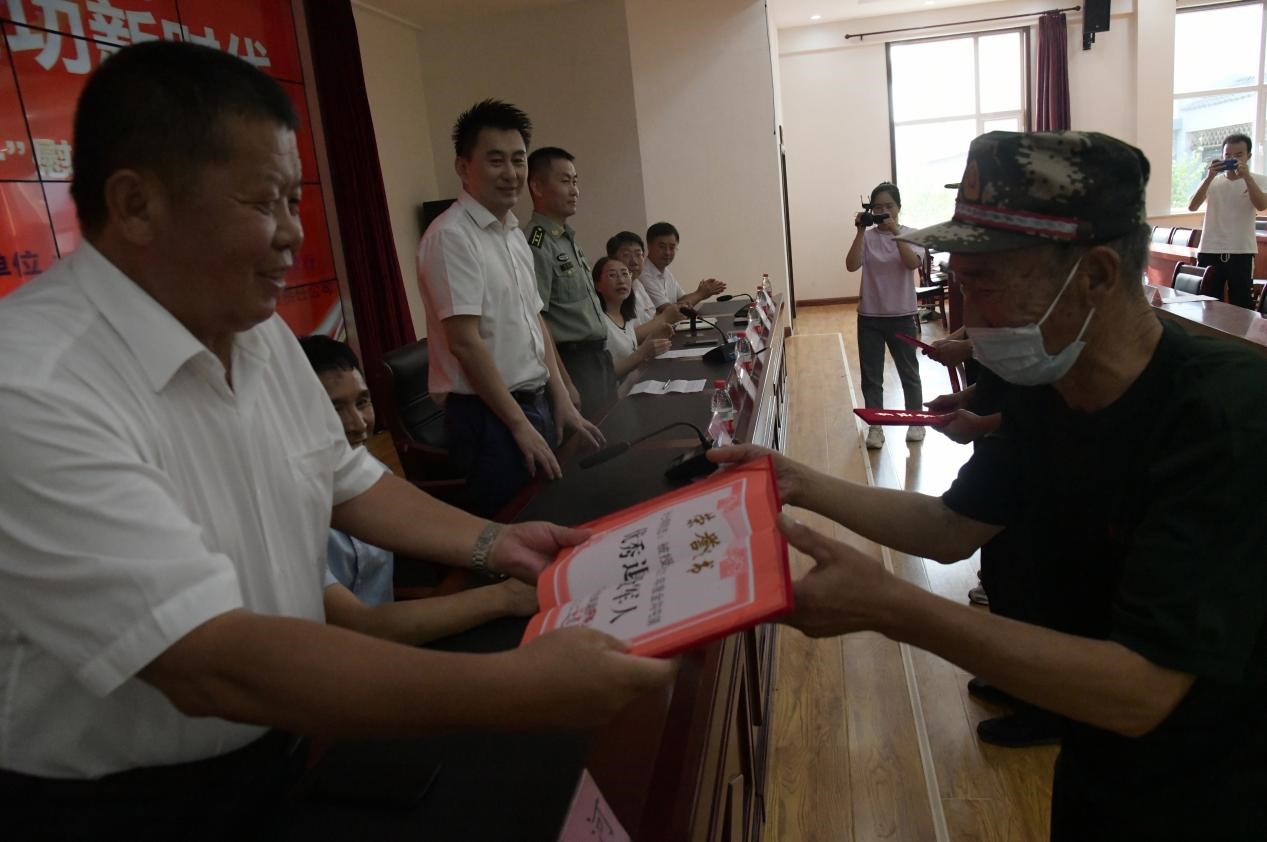 8月1日下午,灤平縣金溝屯鎮(zhèn)下?tīng)I(yíng)子村聯(lián)合愛(ài)心企業(yè)中國(guó)郵政儲(chǔ)蓄銀行灤平支行、灤平盛陽(yáng)村鎮(zhèn)銀行金溝屯支行和承德久財(cái)農(nóng)牧開(kāi)發(fā)有限責(zé)任公司共同舉辦了“退伍不褪色 建功新時(shí)代”第二屆“八一”慰問(wèn)退役軍人座談會(huì);顒(dòng)現(xiàn)場(chǎng),大家歡聚一堂,共同慶祝中國(guó)人民解放軍建軍95周年,共敘魚水深情,并為優(yōu)秀退役軍人頒發(fā)榮譽(yù)證書。 王海琦 郎朗 攝
