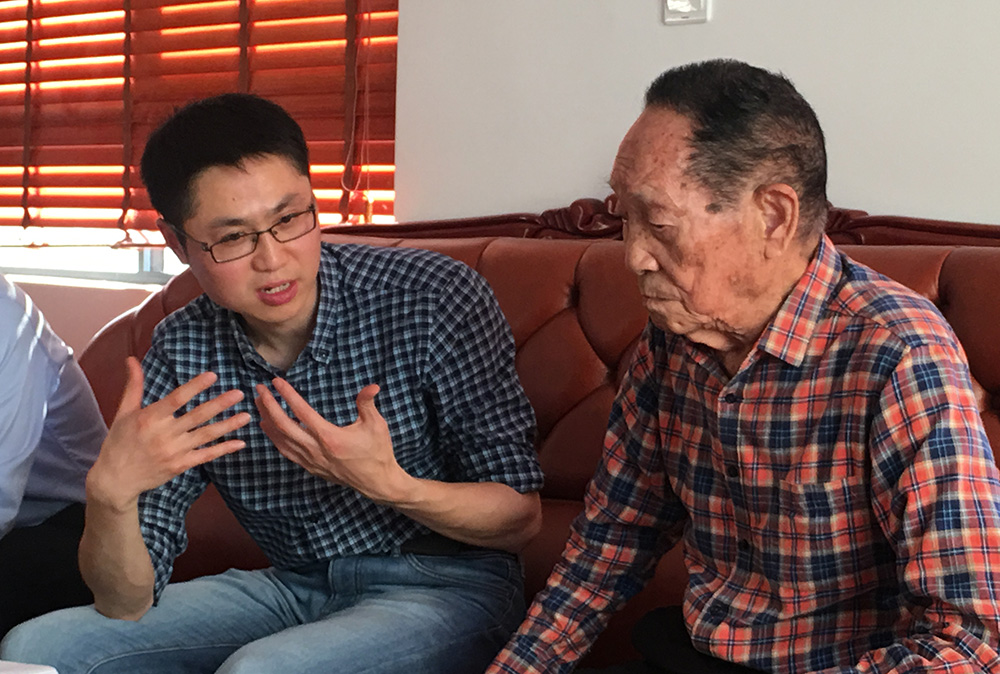 王克劍向袁隆平院士匯報(bào)科研進(jìn)展。受訪者供圖